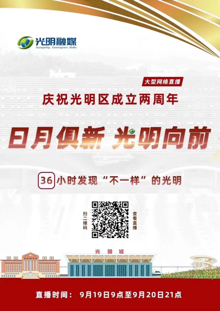2020年9月19日,光明區(qū)成立兩周年,為做好“光明區(qū)成立兩周年36小時大型網(wǎng)絡(luò)直播”,深圳新聞網(wǎng)全方位做好技術(shù)保障,確保各平臺拉流順暢,36小時的直播共吸引600余萬人次關(guān)注。