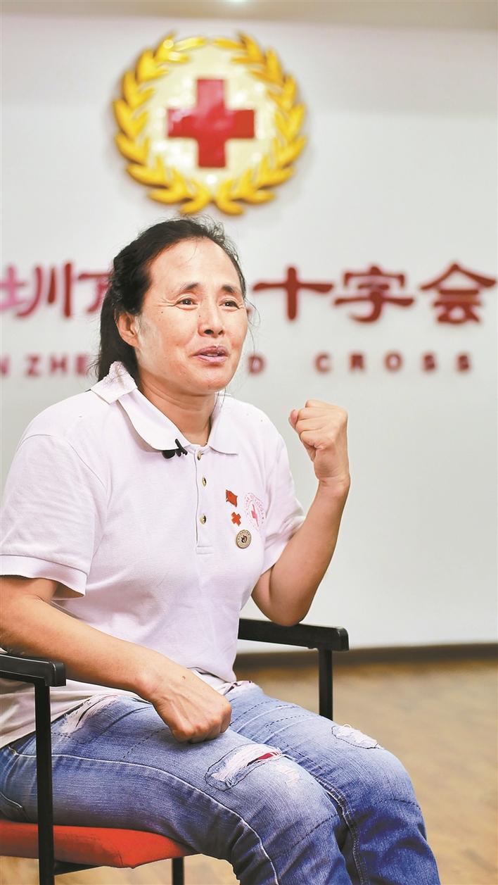 1997年,我從濟南市商河縣的農村來到深圳,幫妹妹照看孩子。一次偶然的機會,我看到路邊一輛無償獻血車,車上寫著缺A、B、O型血,這讓我想起了小時候看過的小人書,白求恩大夫獻出300毫升鮮血挽救了八路軍傷員的生命,心想現在自己也有機會通過獻血去救助危重的病人,真的太好了。漸漸地,我成了深圳市紅十字會的“??汀保渤闪松钲谑屑t十字會的志愿者。至今,我志愿服務時間近6萬小時,無償獻血316次。