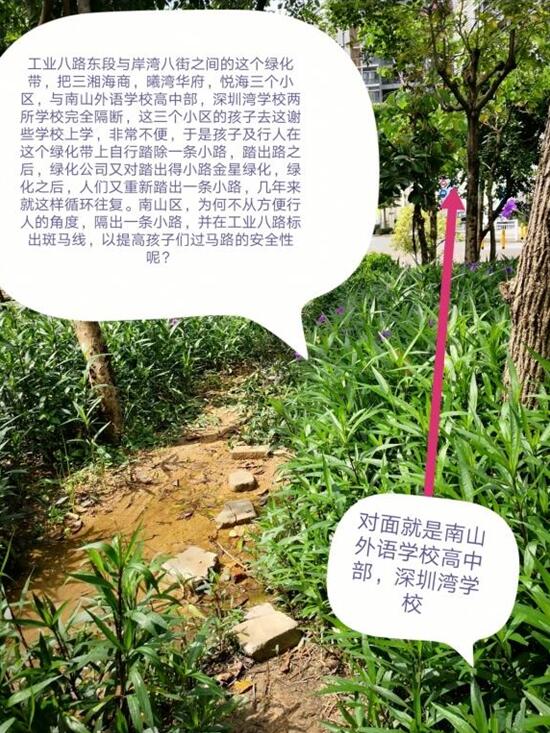 南山區(qū)蛇口街道辦就此事回應(yīng)稱,街道已要求園林綠化公司對該處加強(qiáng)監(jiān)管,及時補(bǔ)植踩出的空地。同時提醒市民朋友,遵守交通規(guī)則,不要違法穿越綠化帶。在交通部門尚未做好規(guī)劃前,通行沿交通路口斑馬線行走。