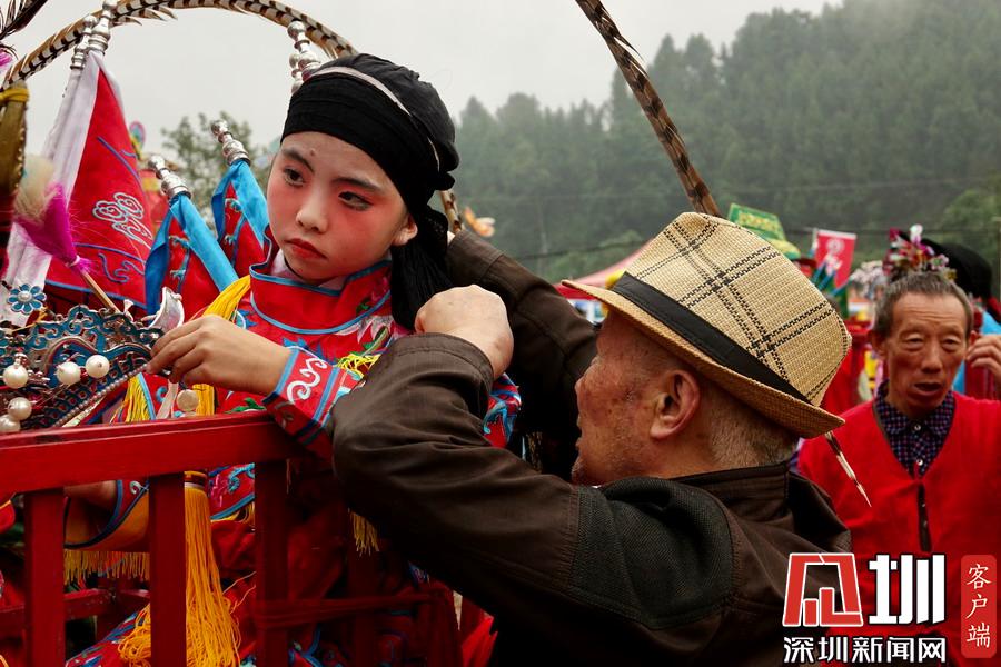 郪江古鎮(zhèn)古典風(fēng)格的迎賓儀式和民俗風(fēng)情展示。李仁奇攝