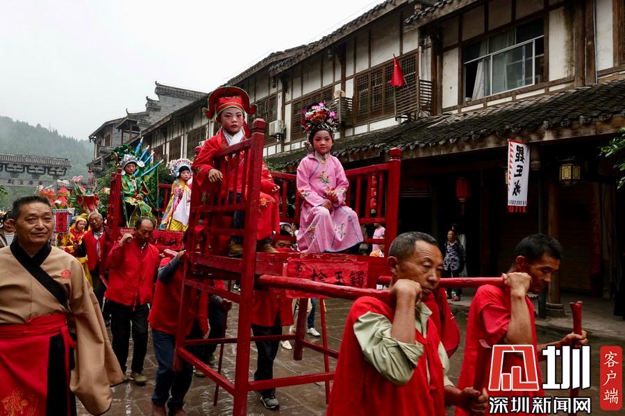 郪江古鎮(zhèn)古典風格的迎賓儀式和民俗風情展示。李仁奇攝