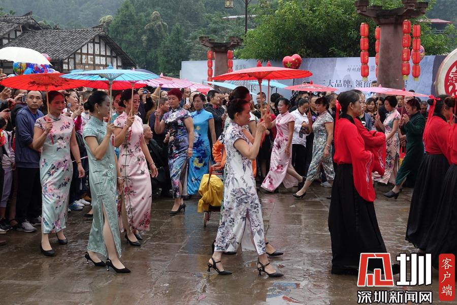 郪江古鎮(zhèn)古典風格的迎賓儀式和民俗風情展示。李仁奇攝