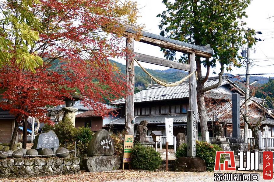 在明媚的陽(yáng)光下,日本風(fēng)格民居掩映在紅葉之中,房前屋后的小景也很漂亮。李仁奇攝