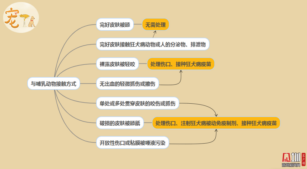 注:與非哺乳動(dòng)物接觸則不需針對(duì)狂犬病進(jìn)行處理。