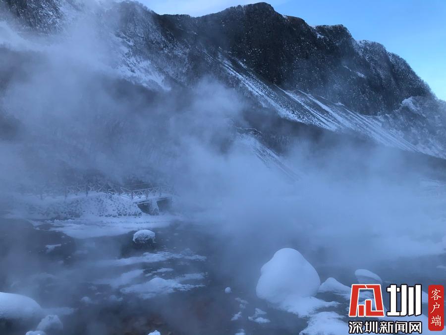 周圍一片銀裝素裹,冰天雪地,而這里熱氣騰騰,煙霧裊裊,實在是別有一番景致。