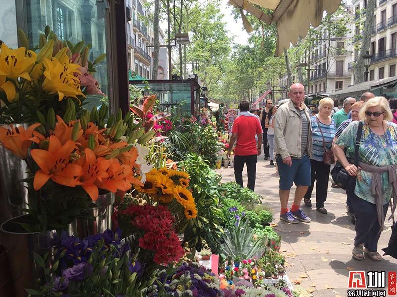 這條街連接著老城區(qū)加泰羅尼亞廣場和哥倫布紀(jì)念碑廣場兩個主要景點,每天游人如織。圖為蘭布瑯花街。李仁奇 攝