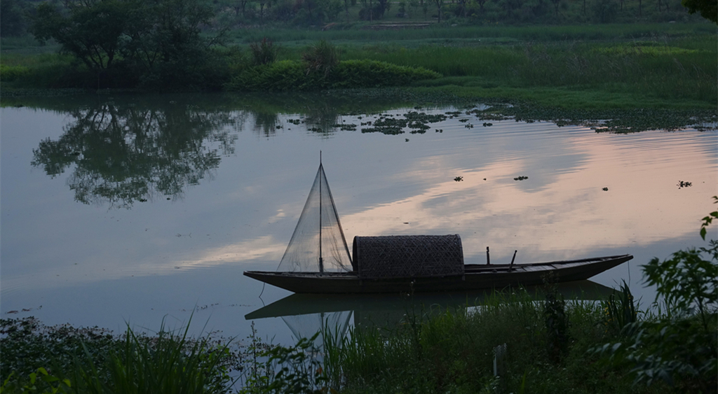 停泊在江邊的小漁船。李仁奇 攝