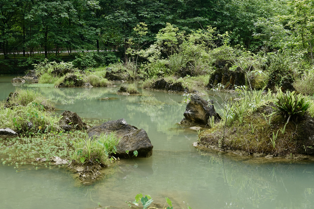 水中的石頭長(zhǎng)滿(mǎn)蕨類(lèi)植物,就像一個(gè)個(gè)盆栽。李仁奇 攝