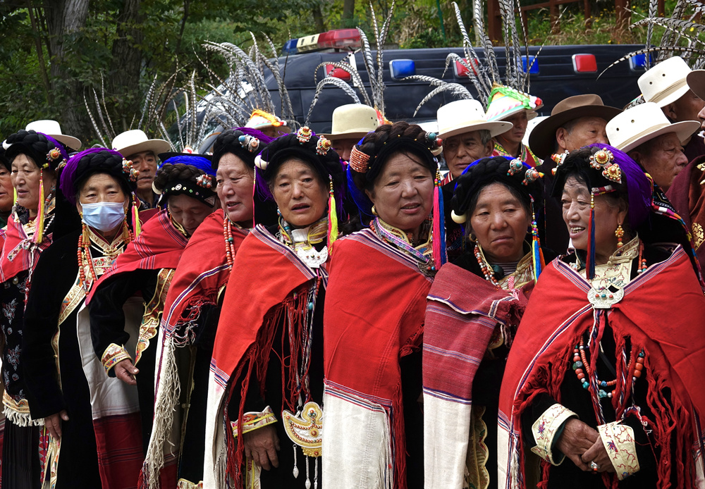 巴底鎮(zhèn)二基坪弓箭舞表演隊(duì),他們將表演弓箭舞《嘉絨十三戰(zhàn)神》。李仁奇 攝