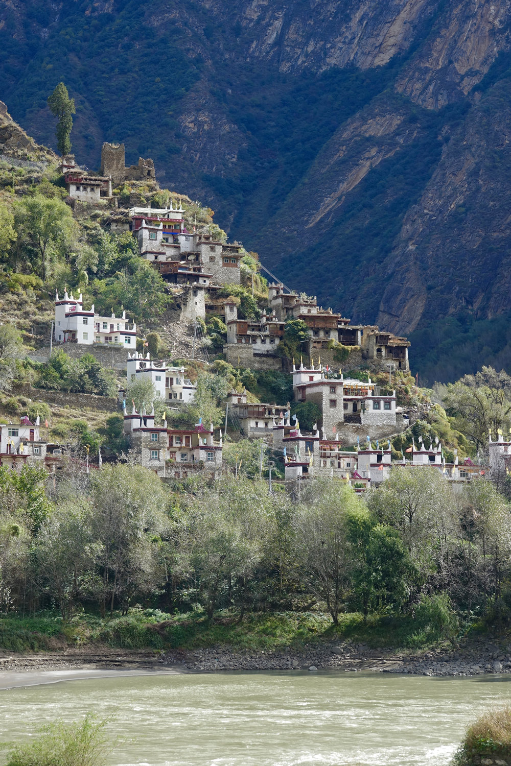 屋頂四個角落有白色的小佛塔,代表著山、樹、水、地四方神的四角,上面還插著經(jīng)幡,每逢節(jié)日會進(jìn)行祭祀,代表著嘉絨藏族的民俗風(fēng)情。李仁奇 攝