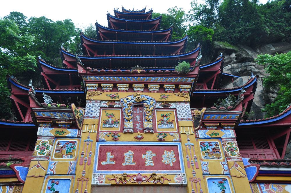 全寨共分兩部分,山下9層和山上3層錯落有致,從遠處眺望12層樓重檐高聳,渾然一體,宏偉壯觀,共高56米,閣內(nèi)每層石壁上均有題詠。李仁奇 攝
