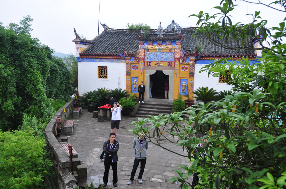 山頂有古剎天子殿,創(chuàng)建于康熙、乾隆年間,是此寨最高點。正殿墻壁有女媧補天故事的壁畫,畫下方,有一遺石,似石寶寨。李仁奇 攝