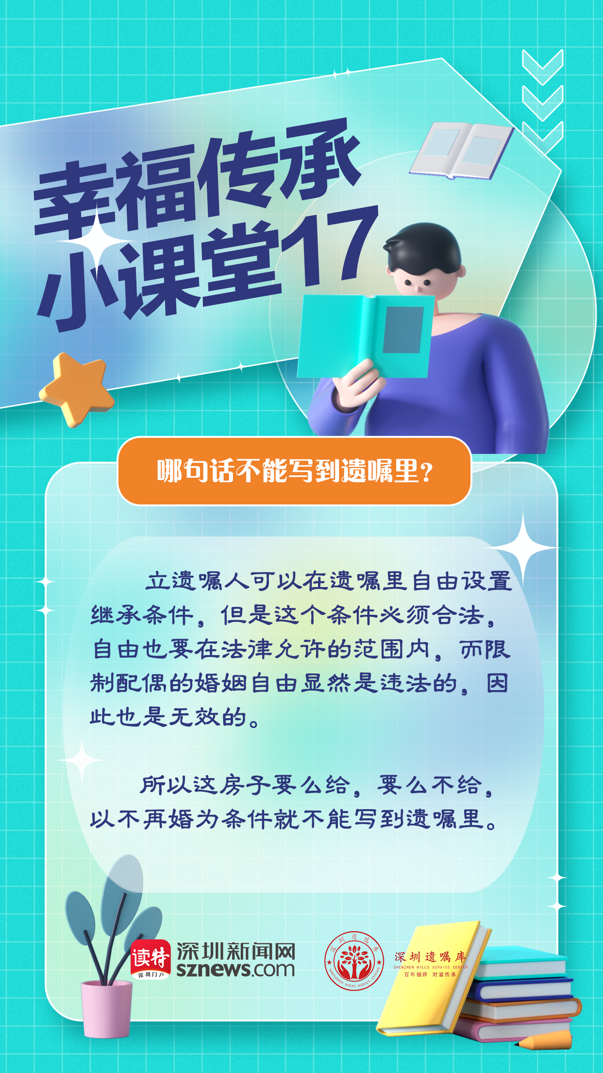 由深圳新聞網(wǎng)聯(lián)合廣東嘉得信律師事務(wù)所、深圳遺囑庫特別策劃的“幸福傳承小課堂”第17期就來說說,哪些話不能寫到遺囑里。上述案例的老兩口考慮很周全,他們把各個銀行的存款都列了一個明細(xì)單,標(biāo)明了分配方式,哪一筆給兒子,哪一筆留給女兒,總體來說兒女分到的財產(chǎn)都差不多。