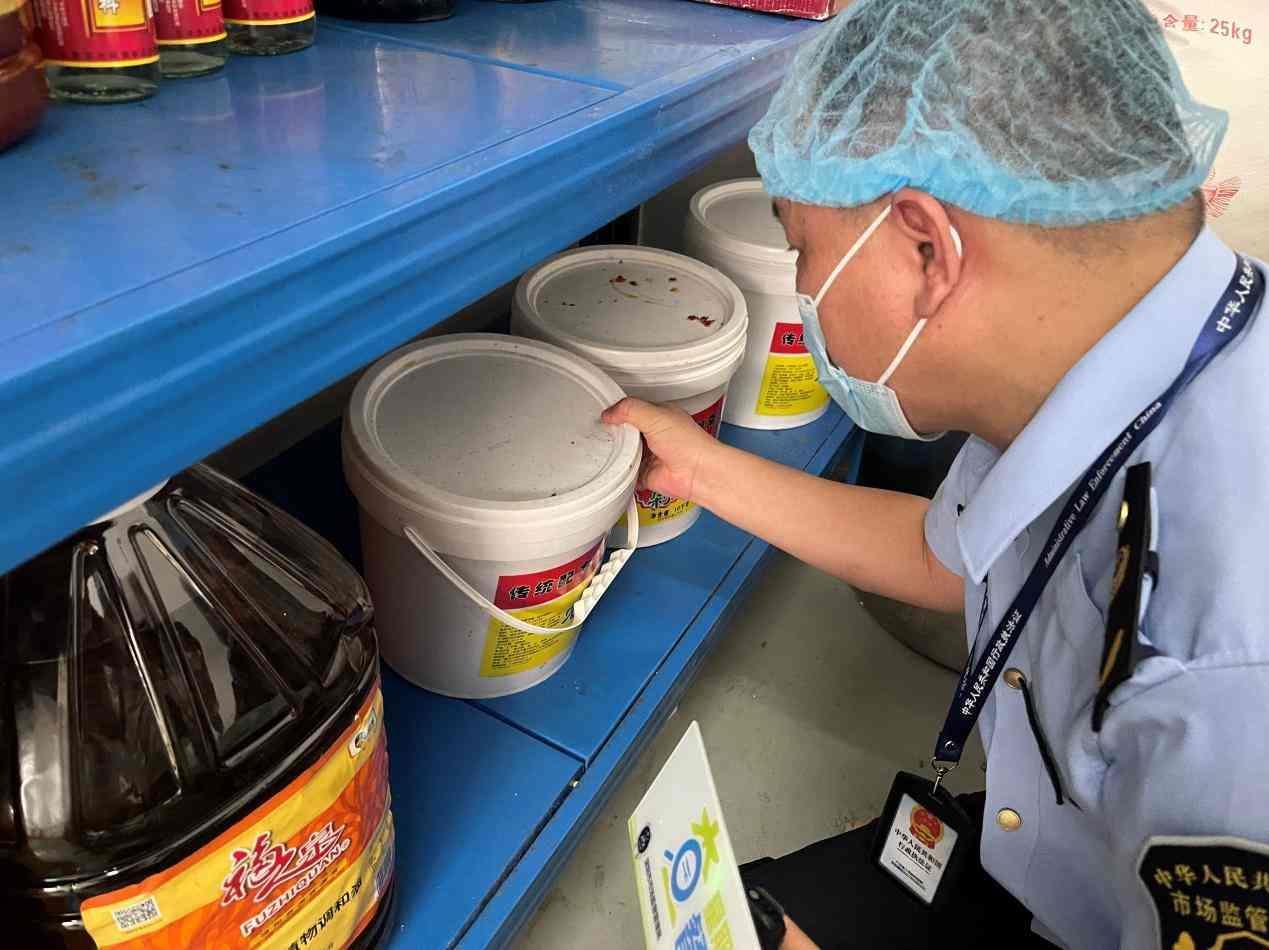隨后,執(zhí)法人員一行對食堂的索票索證進(jìn)行了檢查,發(fā)現(xiàn)食堂缺少供貨廠商的食品經(jīng)營許可證,且食品留樣記錄不規(guī)范;晨檢記錄不規(guī)范,該食堂登記在冊有四名員工,晨檢紀(jì)錄卻有六名;培訓(xùn)記錄不規(guī)范,缺少具體培訓(xùn)時間、地點(diǎn),缺少佐證照片;同時,倉庫散裝食品也缺少相應(yīng)的標(biāo)簽標(biāo)識。