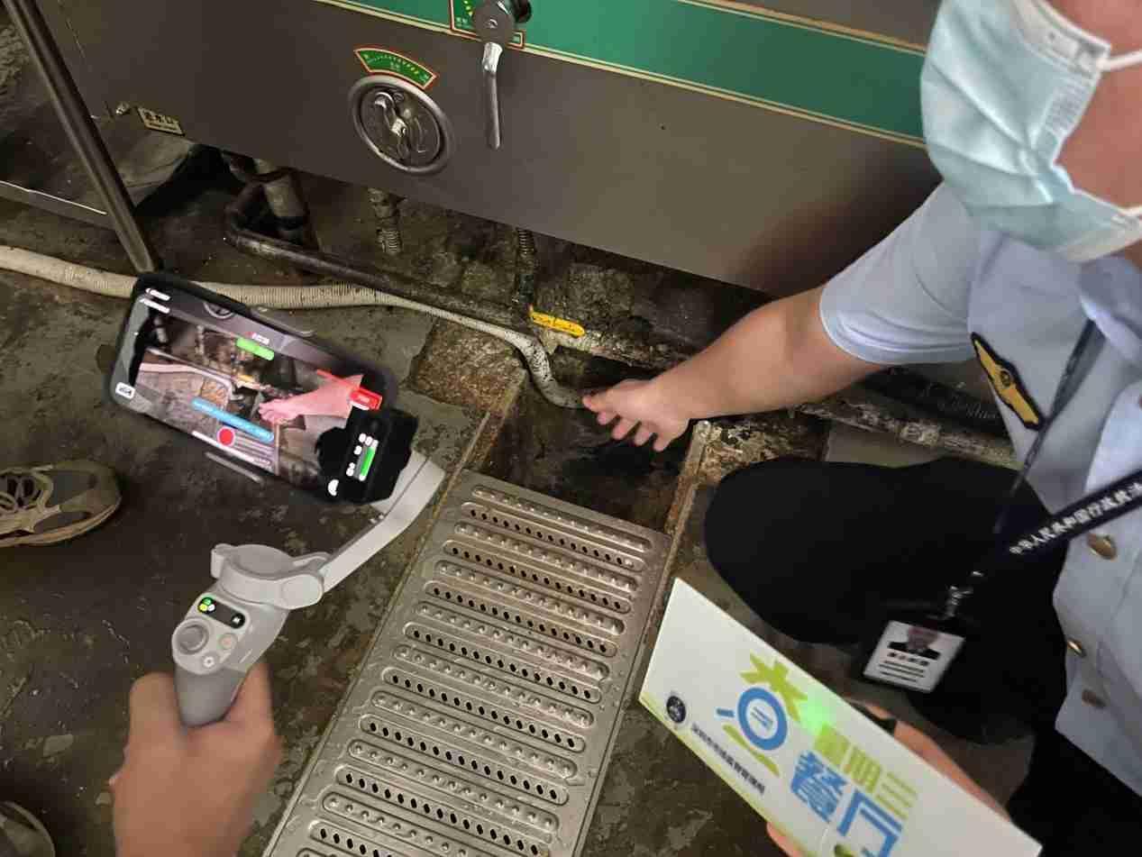 但在檢查中,執(zhí)法人員也發(fā)現(xiàn)了不少的問題。在粗加工區(qū),執(zhí)法人員發(fā)現(xiàn)蔬菜清洗池旁邊有一塊潔凈程度較差的磨刀石,要求食堂負(fù)責(zé)人將其清潔后移放別處,以防止對食材產(chǎn)生污染。進(jìn)入烹飪區(qū),執(zhí)法人員對食堂員工進(jìn)行了手部檢查,發(fā)現(xiàn)員工指甲偏長,要求盡快剪除。同時,執(zhí)法人員發(fā)現(xiàn)烹飪區(qū)缺少燈具,光線較為昏暗,若鍋中有異物難以發(fā)現(xiàn),建議食堂負(fù)責(zé)人盡快安裝燈具。而在烹飪區(qū)的地面,執(zhí)法人員在排水渠盡頭發(fā)現(xiàn)了一個未加遮掩的大洞,執(zhí)法人員表示,這樣的大洞極容易造成老鼠、蟑螂等生物的入侵,要求食堂負(fù)責(zé)人盡快對此問題進(jìn)行整改。