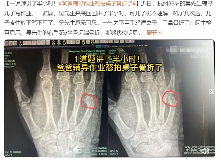 爸爸輔導作業(yè)怒拍桌子骨折了