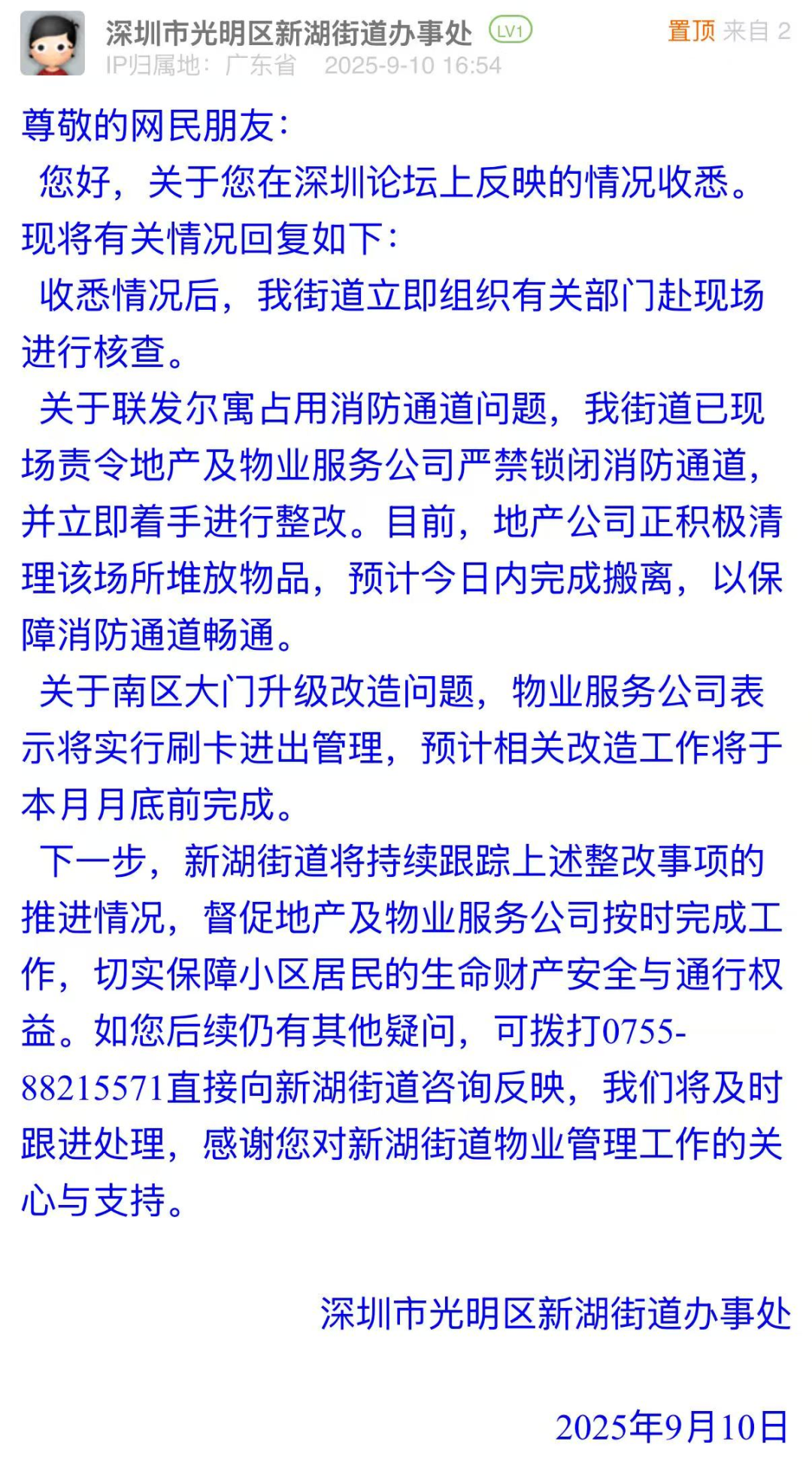 3、有市民反映光明區(qū)新湖街道一物業(yè)違法占用消防通道進(jìn)行辦公